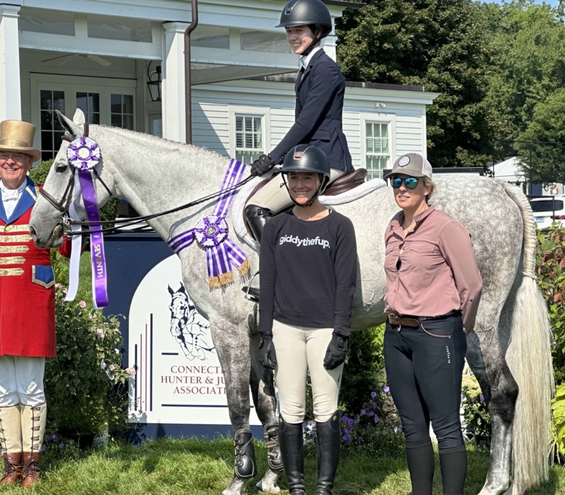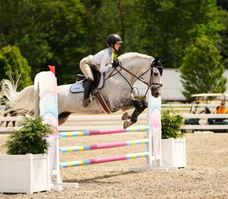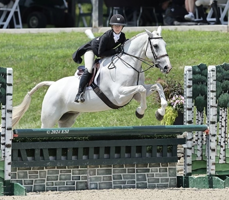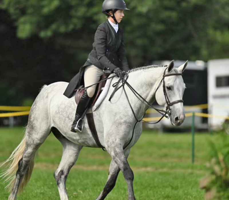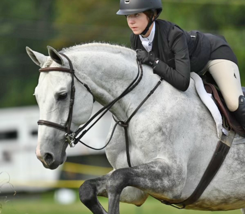 Before I could even walk, I was completely fascinated by horses and spent summers watching my mom and sister ride until I was finally old enough to join them. Growing up in NYC, I looked forward to each weekend where I would be able to have a lesson and see the friends that my sister and I had made. However, once I started competing on a small lesson pony, horses had already taken their place in my life, so driving upstate after school and spending all day at the barn on the weekends and summers became routine. Currently, I ride for Di St. Onge and Helaina Ricciardi at Meadow Creek Farm, having previously trained under Susan Clark at Lucky C Stables from 2015 until her retirement in 2022. I believe that what sets me apart from other jumping seat candidates is that I have 5 years- some may say 8, since I went to every one of my sister’s practices/competitions when I wasn’t old enough- of team riding experience. This journey has taught me to take initiative in supporting my teammates, captains, horses and coaches, and to prioritize my team’s needs above my own.